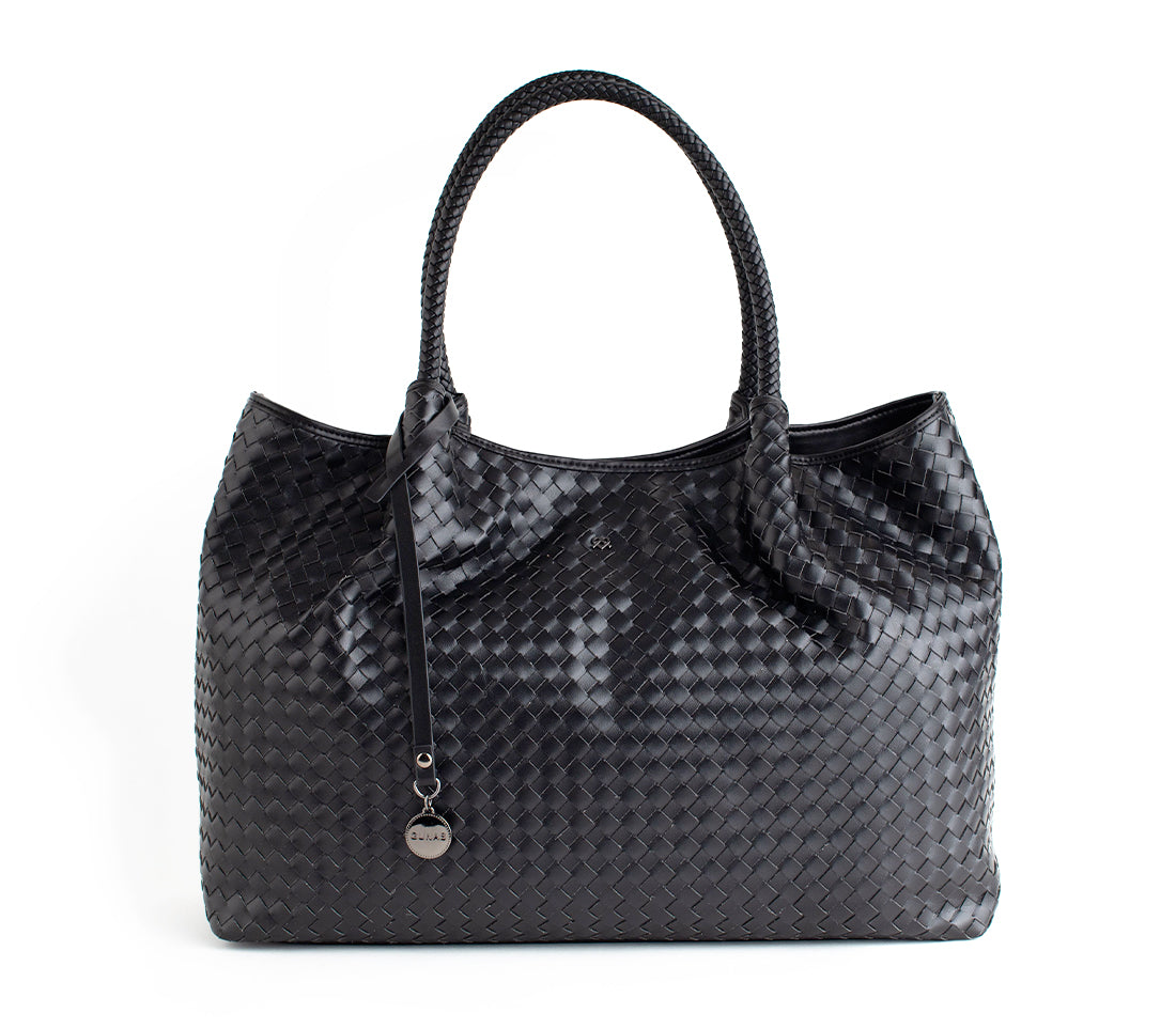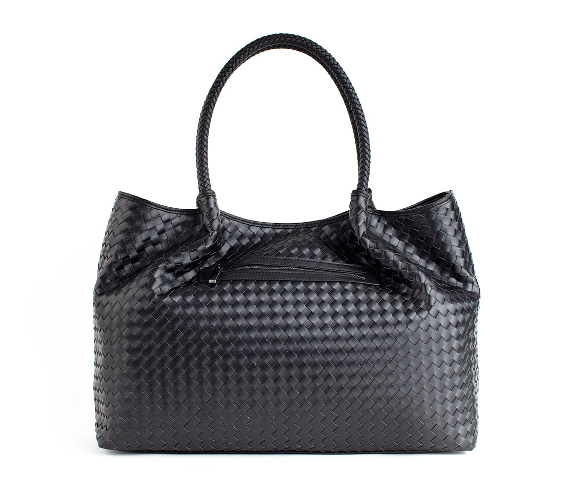 Black Woven Vegan Leather Tote Bag