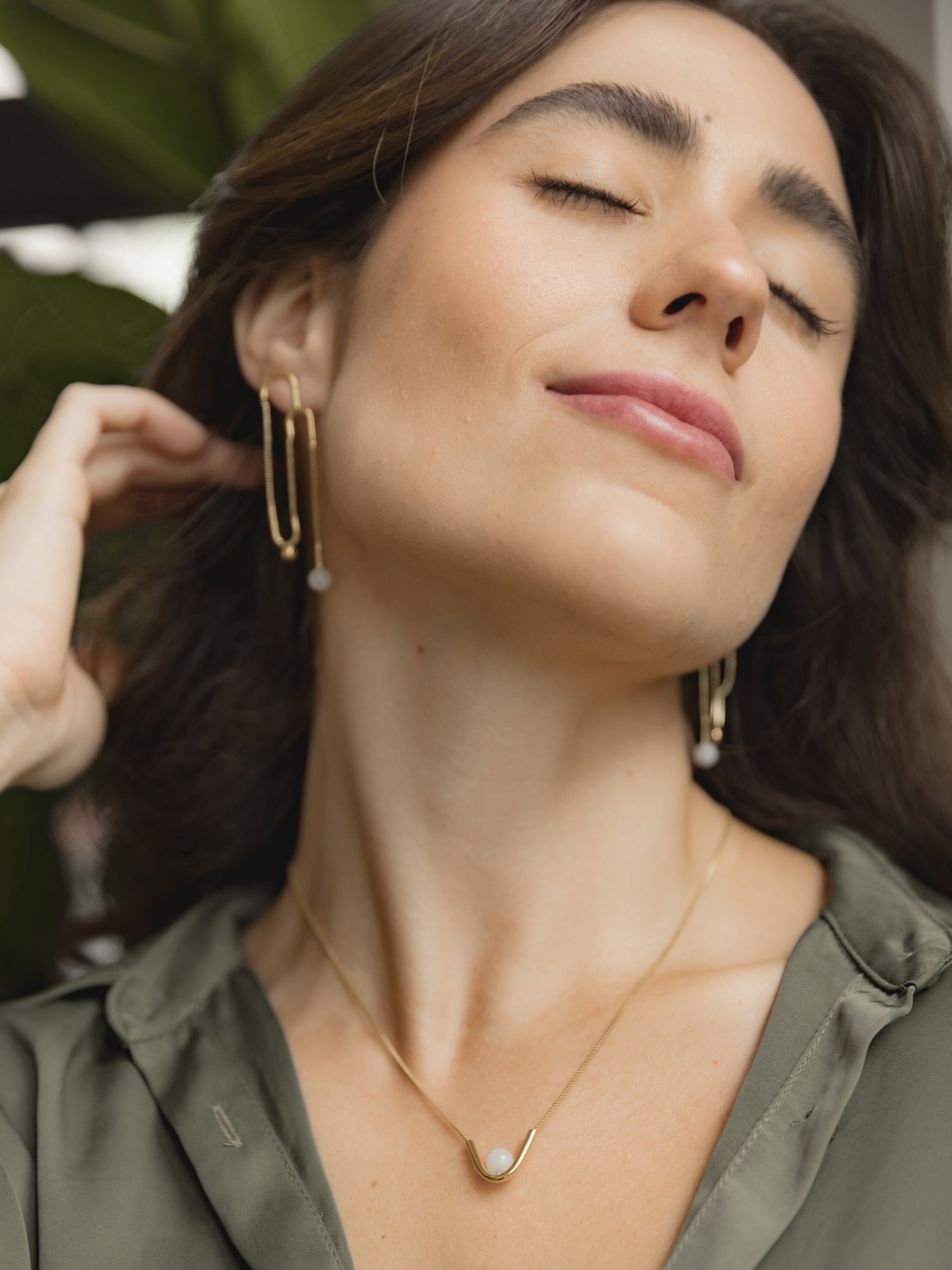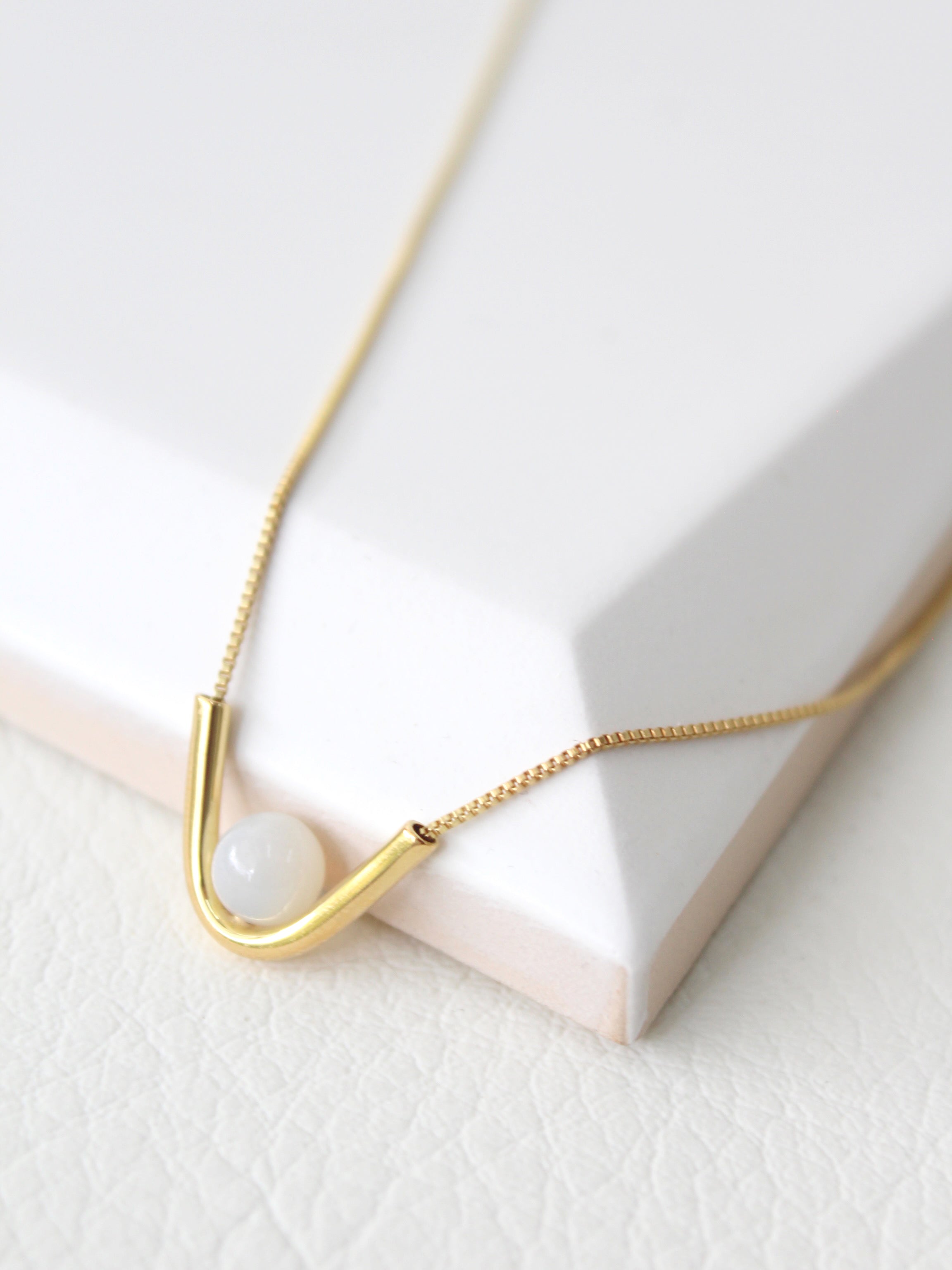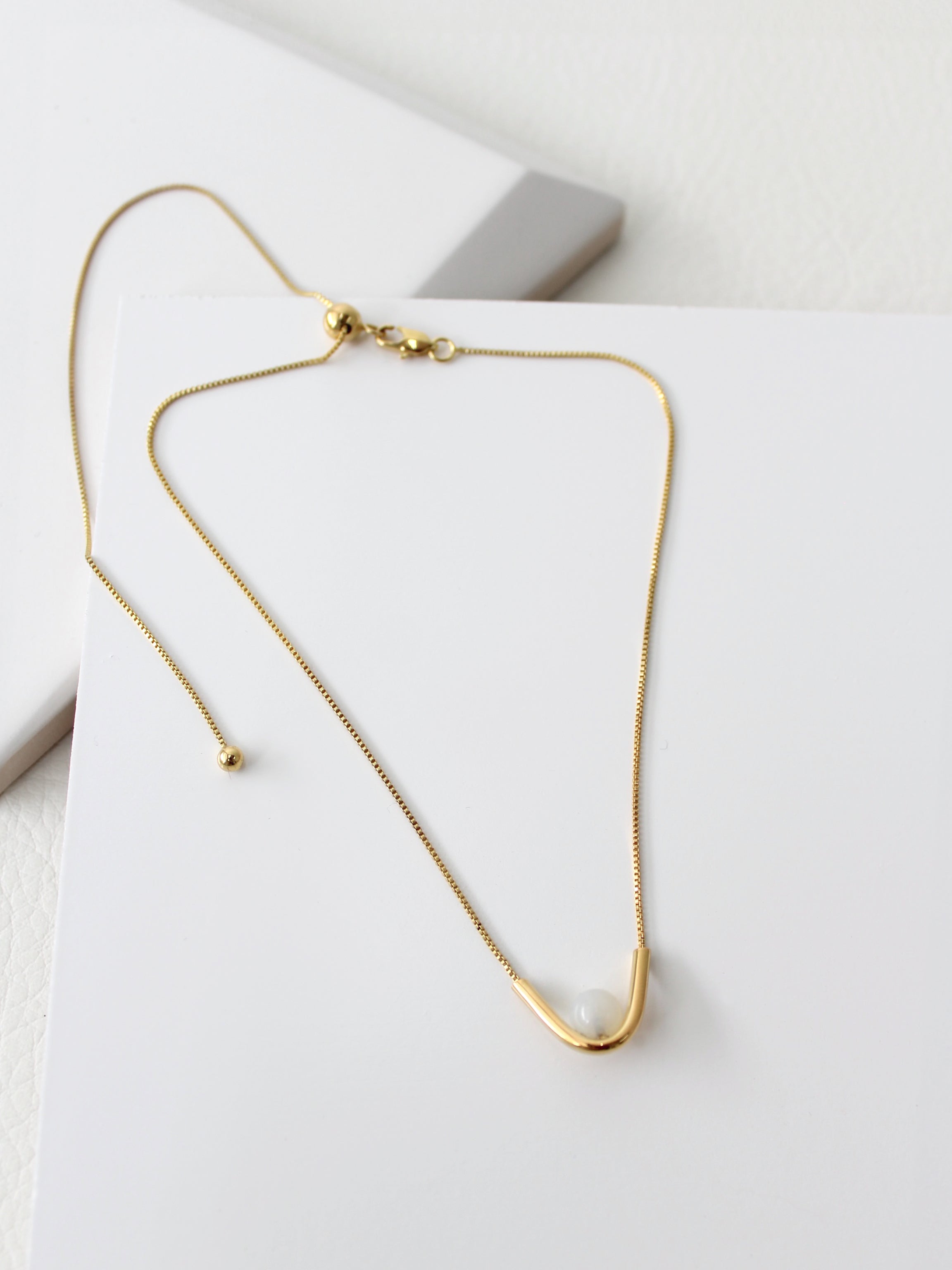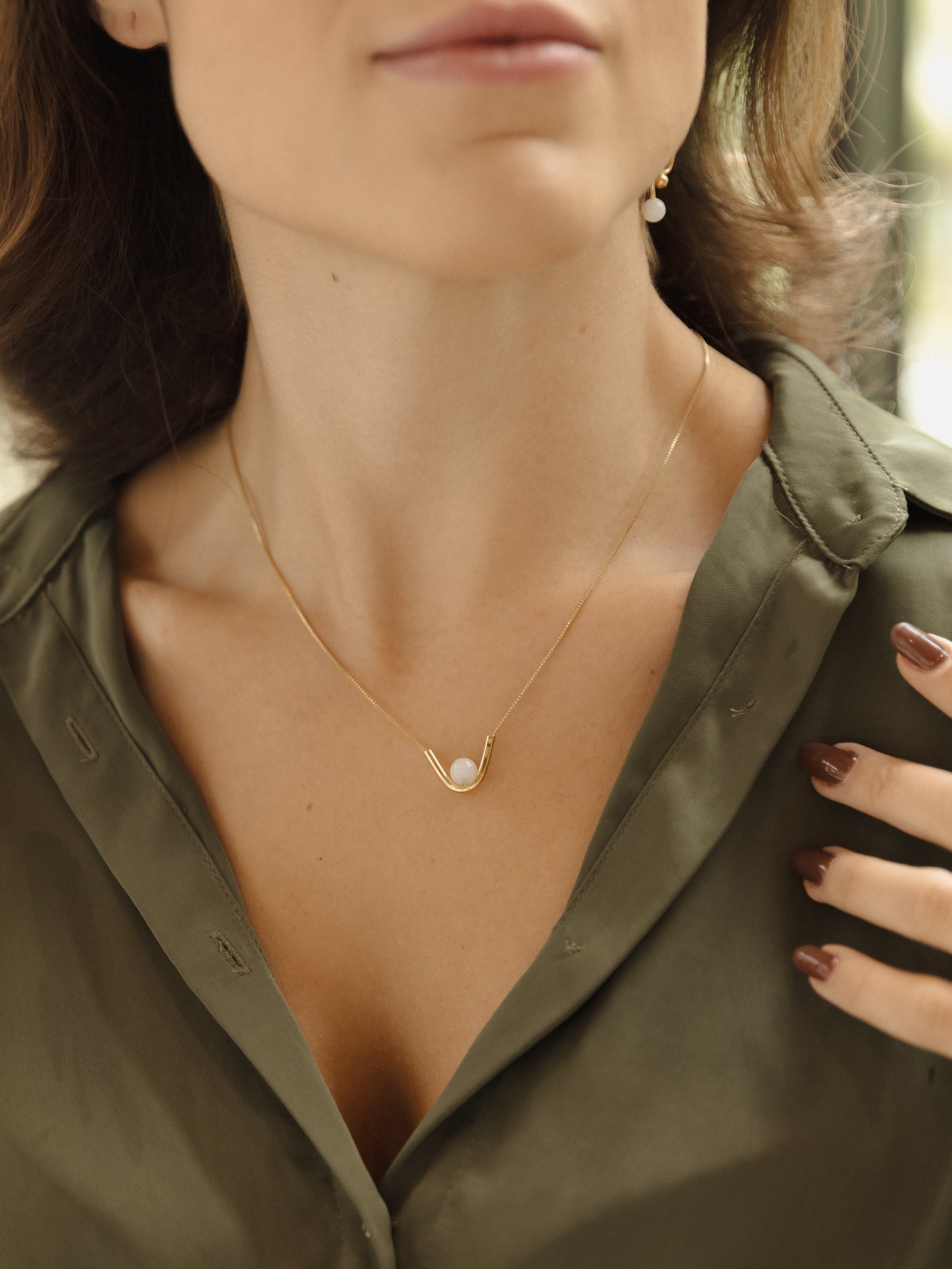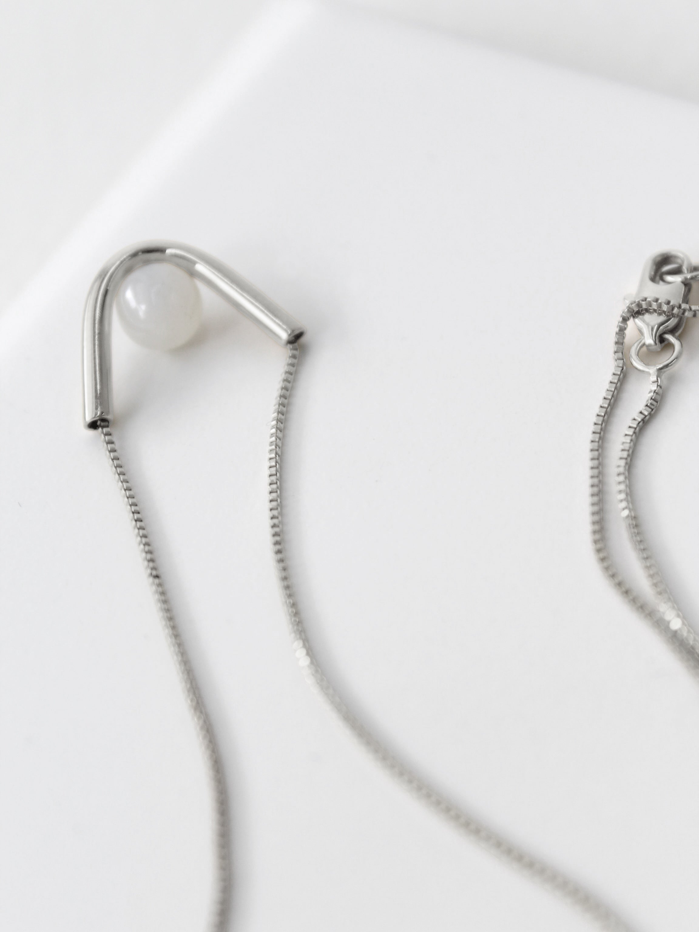 Introducing Lite Necklace, the essential for your everyday inspired by the elegance of pendant light fixtures. With delicately designed sophistication, this necklace effortlessly complements any neckline with grace. Its innovative slider mechanism allows for easy length adjustments, like pulling a zipper, ensuring a perfect fit every time. But this necklace is more than meets the eye; the pendant glides freely on the chain, giving you full control over its position. The nestled white jade pays tribute to the gentle, diffused lighting of pendant fixtures.
