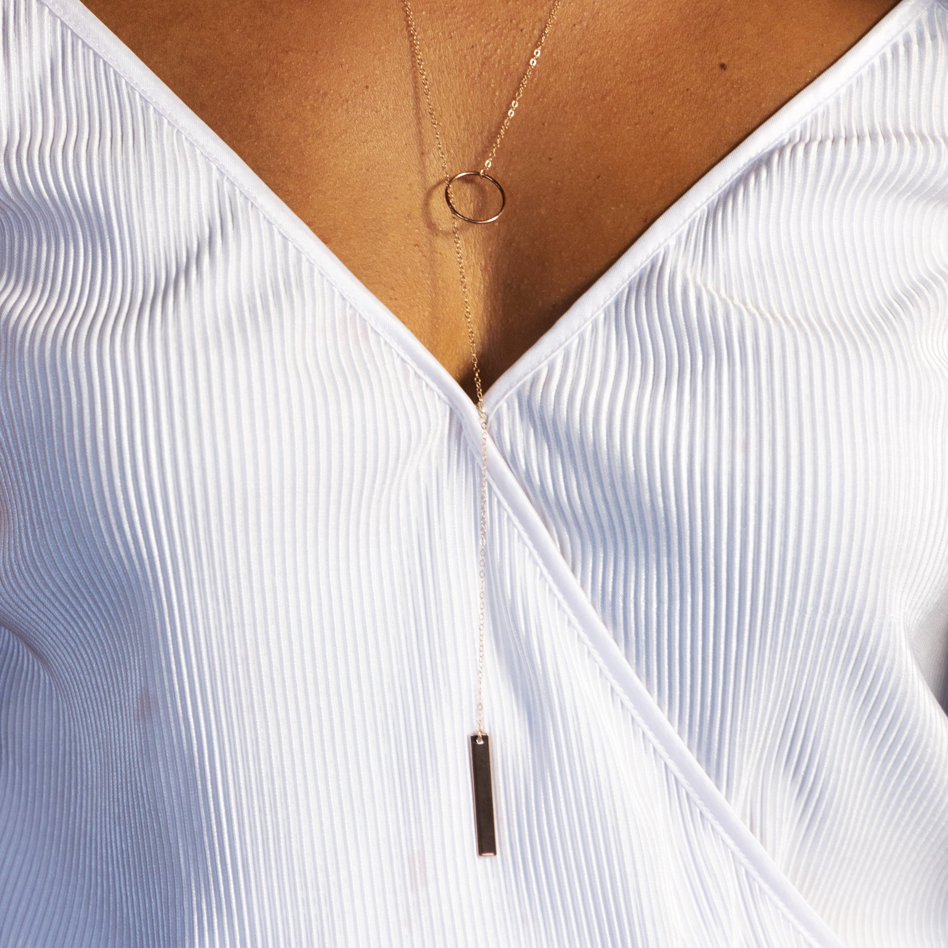 Named after one of the brand's original artisans, this necklace symbolizes resilience and empowerment. With a 28" length and fully adjustable design, it features a 14k Rose Gold Chain and Bar. Each piece is ethically made by women survivors of trafficking in southeast asia and supports them and their families in breaking the chains of poverty.