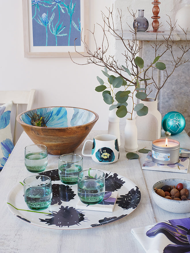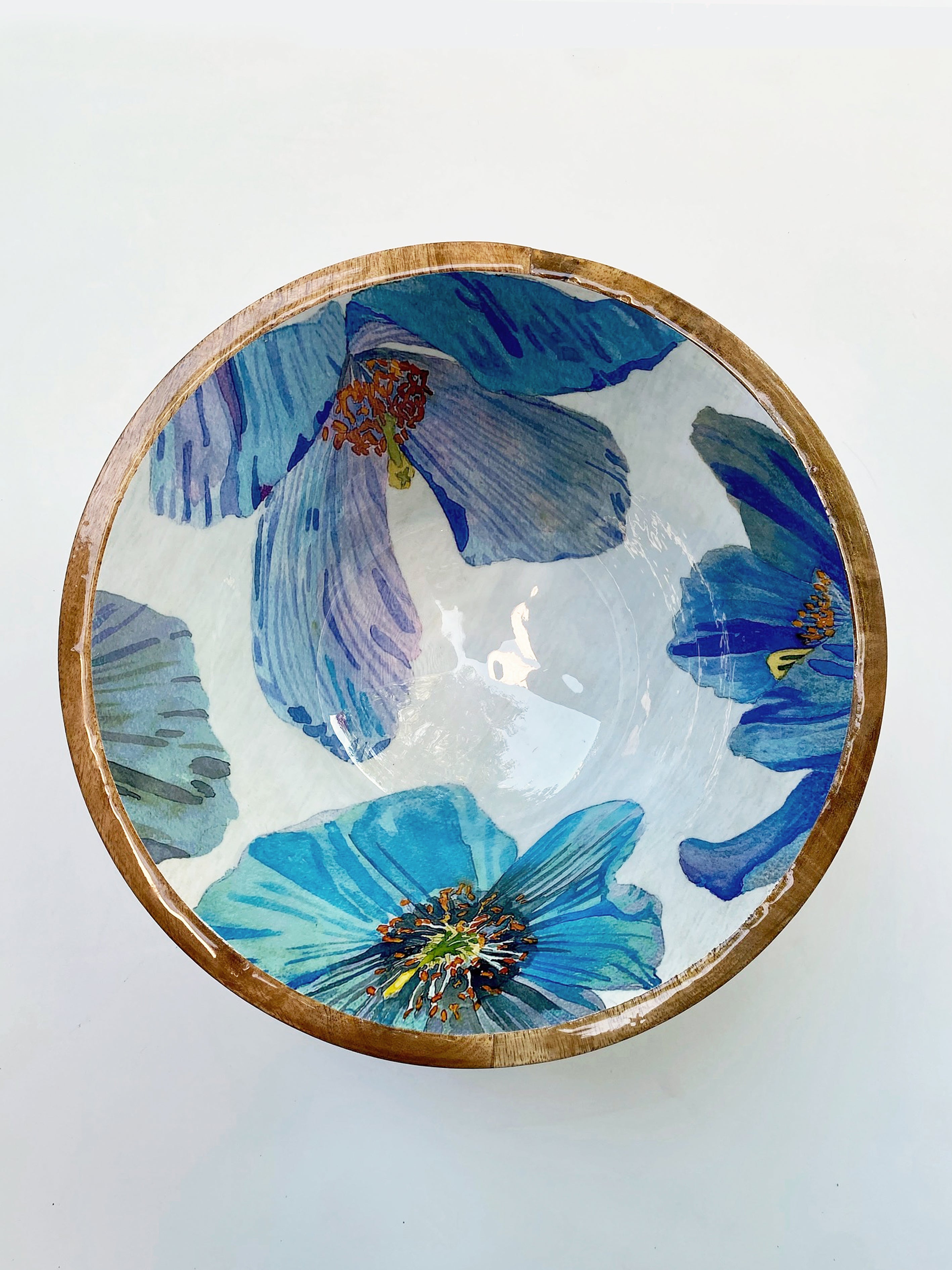 Add a touch of sophistication to your table with this luxurious Serving Bowl, crafted from durable mango wood and finished with a stunning enamel design featuring Himalayan Blue Poppies on Ecru.