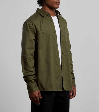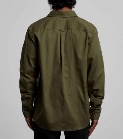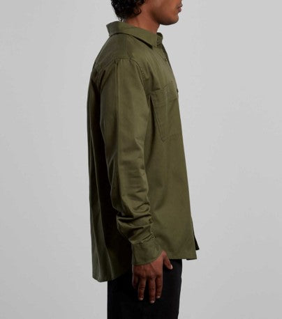 Featuring two chest pockets to store essentials, heavyweight cotton for durability, and a regular fit for comfort. This long sleeve button-up shirt is perfect for both workwear and casual wear, with tonal buttons, side seaming, and a back yoke with hang loop. Made with 7 oz 100% cotton drill that is preshrunk to minimize shrinkage.